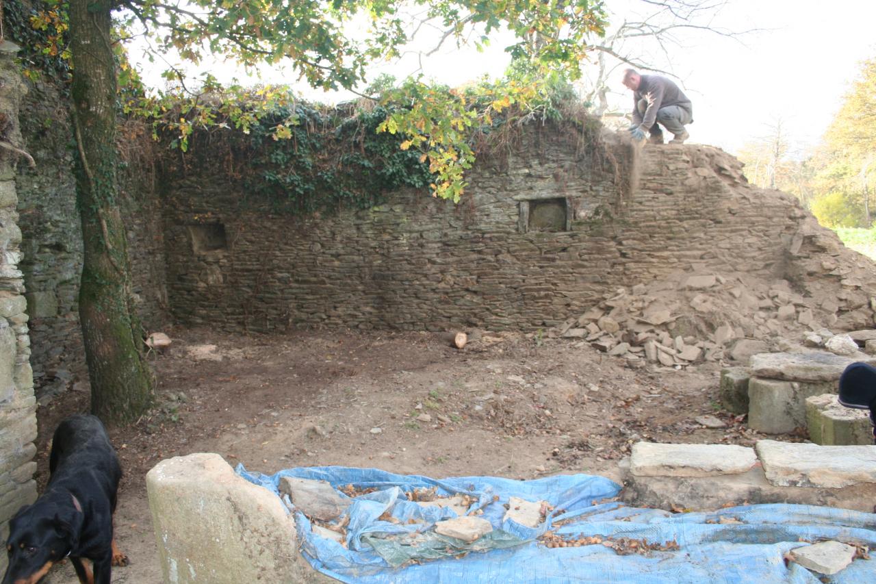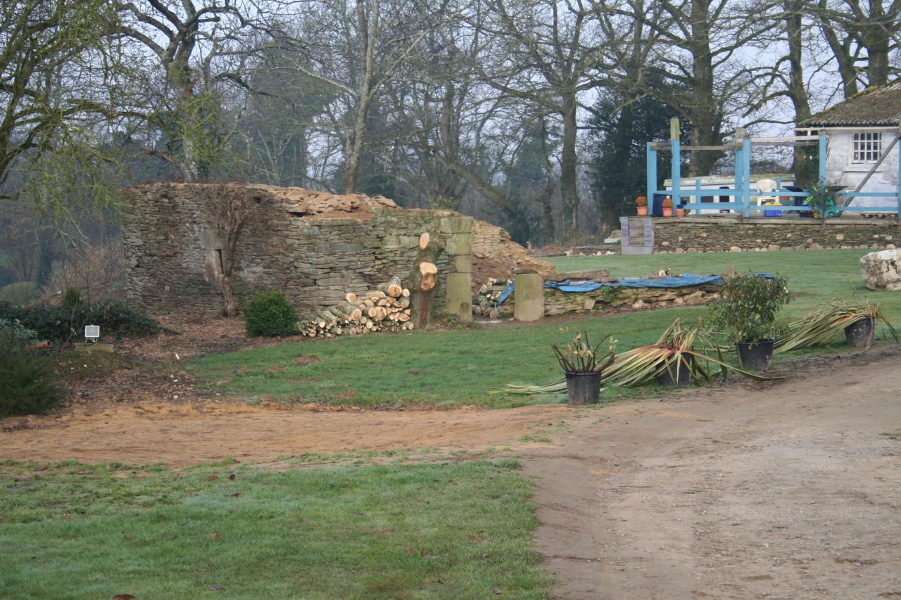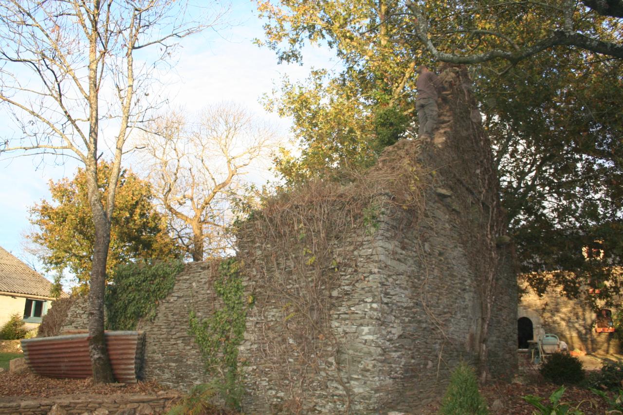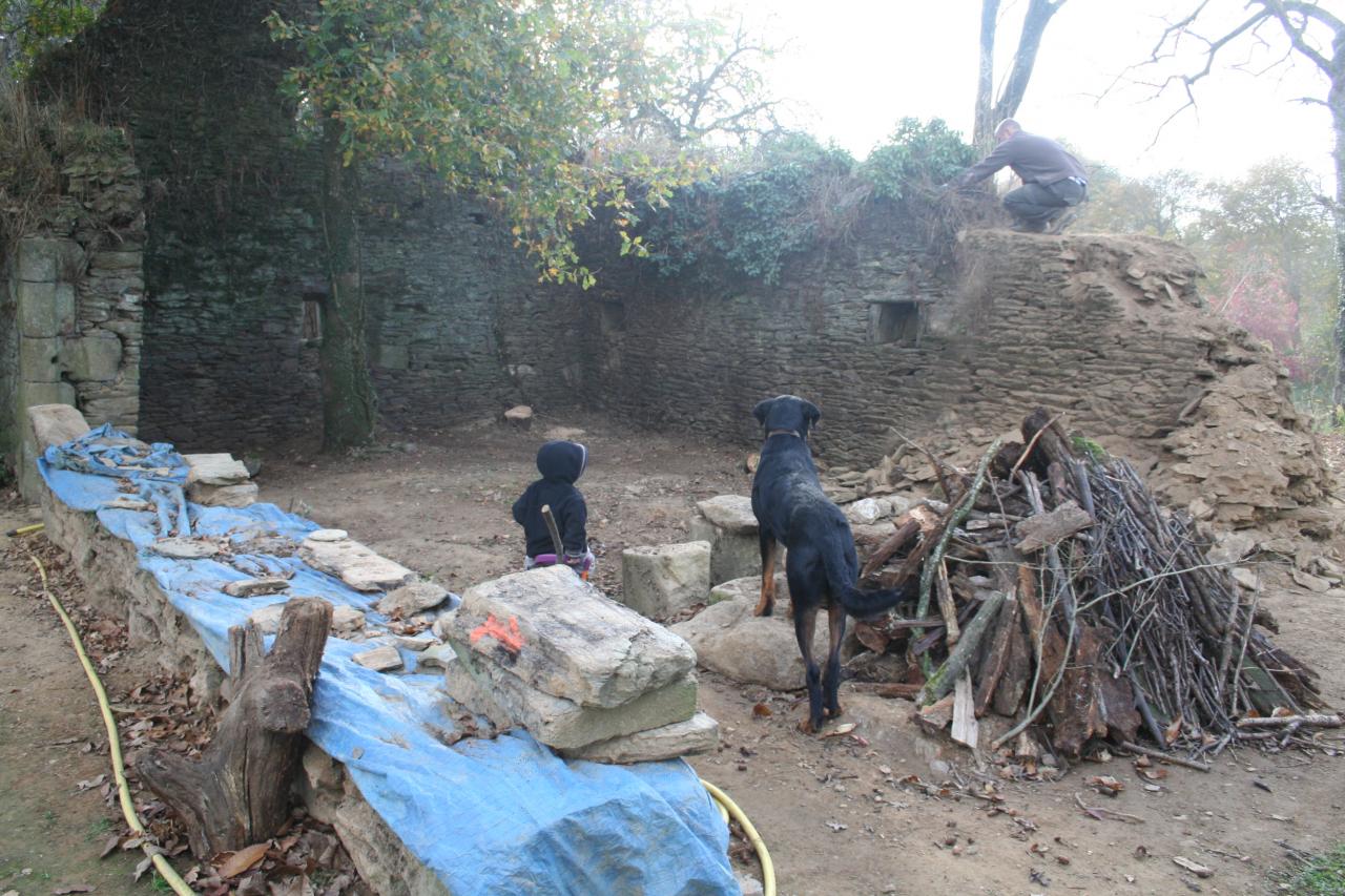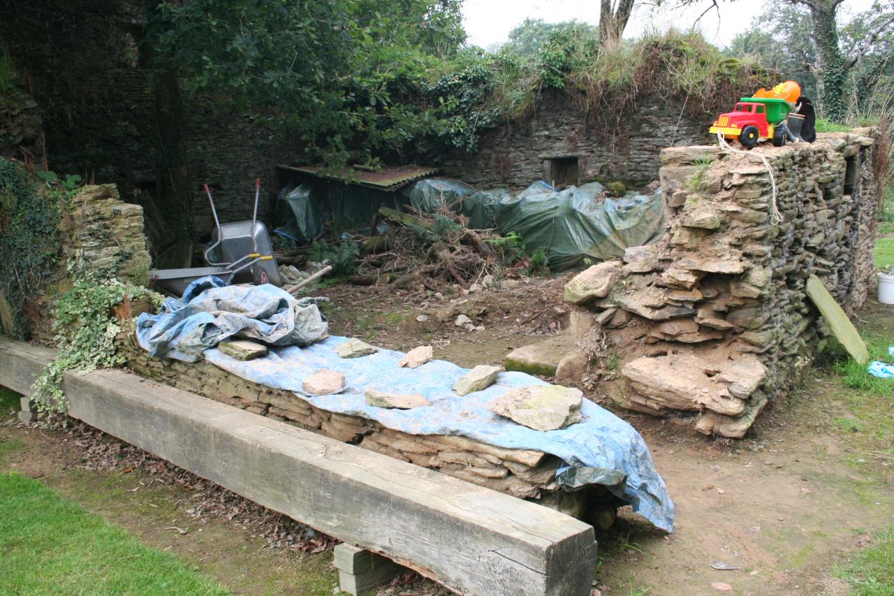 Elle date sans doute du XVIIIème siècle. Malheureusement, une grande partie avait déjà disparue en 1996. La petite partie fût arasée pour des questions de sécurité. Les pierres de cette longère ont été utilisées pour remonter la longère principale, pour la création des murets et une partie est en stock pour le remontage du four à pain et des autres murets.